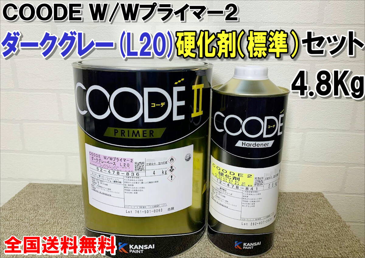 > (在庫あり)関西ペイント コーデW/Wプライマー2 ダークグレー(L20)セット 硬化剤(標準)付き 4.8Kg 自動車 鈑金 塗装 COODE 全国送料無料