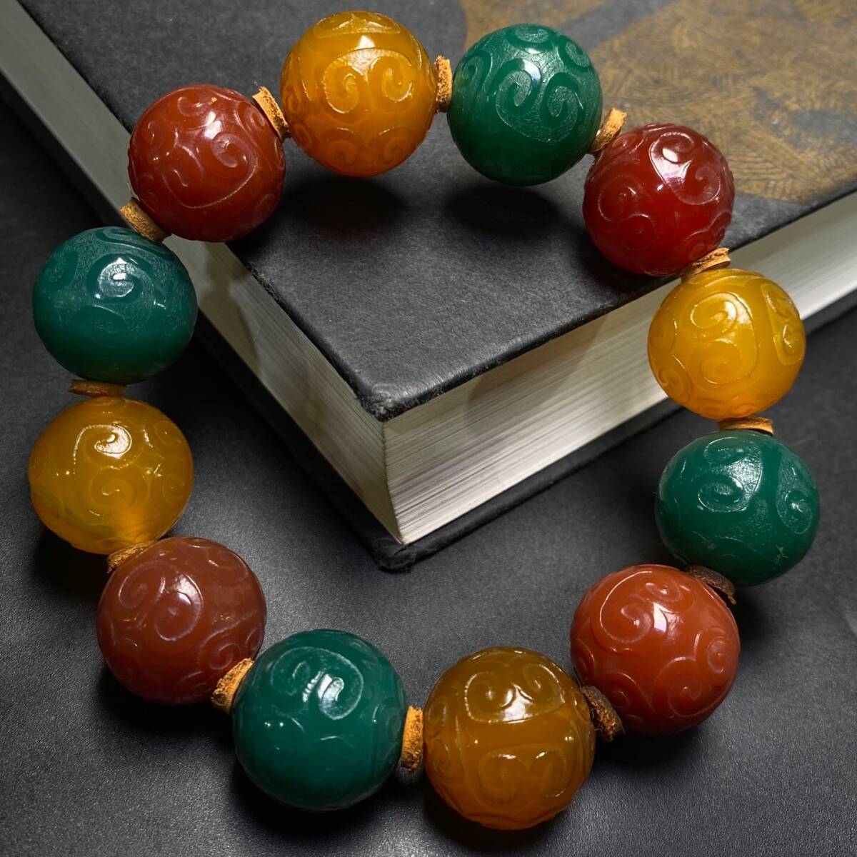 - 『清・古瑪瑙彫・如意紋多寶チェーン・自然風化・根付・風水開運』極細工 置物古賞物 中国古玩 中国古美術