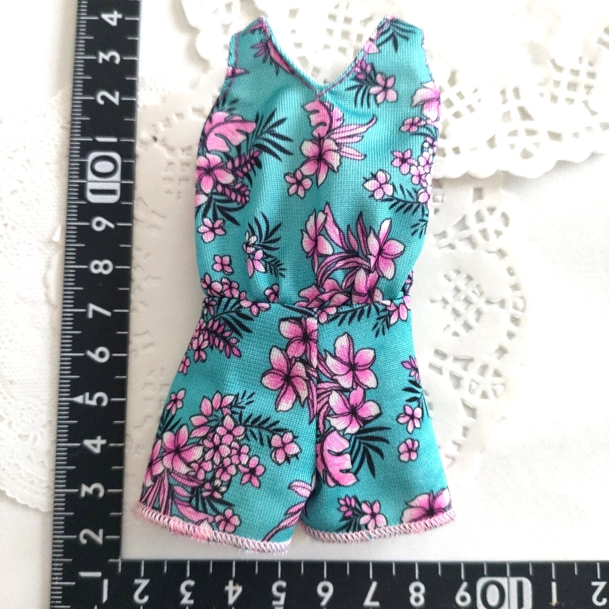 - 5r0830 ドール用 オールインワン 水色 ハイビスカス 花柄 momoko バービー ジェニー 1/6ドール