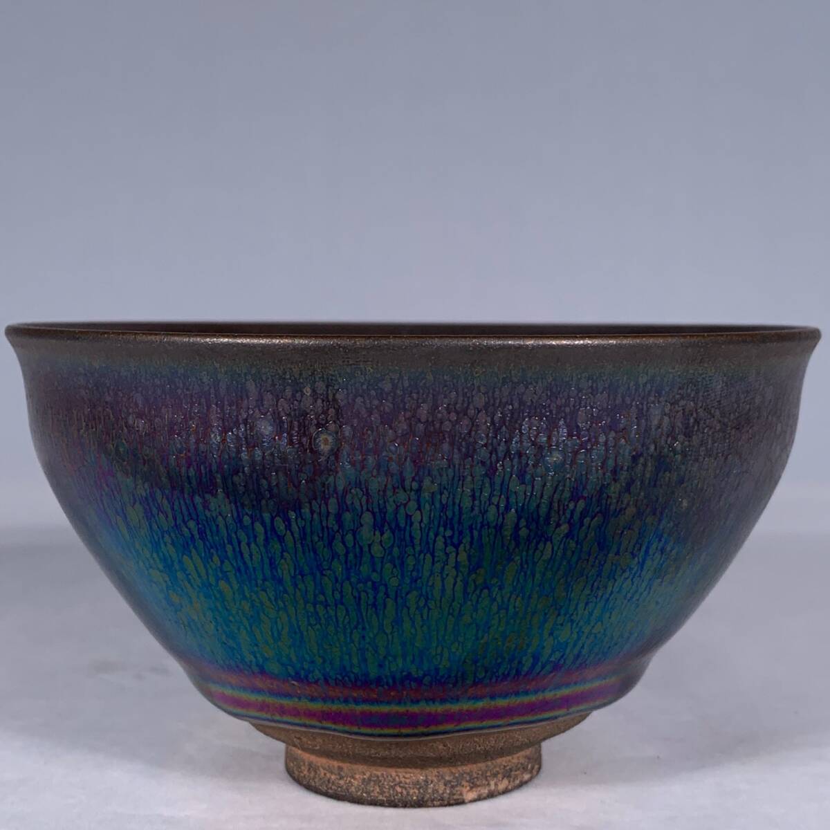 - 蔵友旧蔵出 宋 建窯 窯變 七彩油滴盞 稀少珍品 貴重品 古陶瓷品 置物 古賞物 中国古玩 中国古美術品