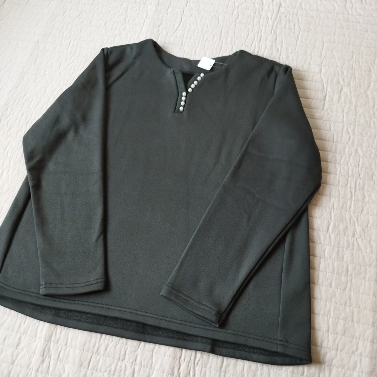 > 1点のみ 未使用 パール調ボタン 暖か 裏起毛 プルオーバー 黒 カットソー トレーナー 大きい 3L 洗濯機ok サイズ違いも 匿名 送料無料