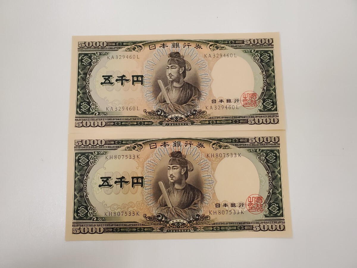 - S【ピン札】 旧紙幣 5000円 × 2 枚 まとめ売り 聖徳太子 日本銀行券 古銭 旧札 コレクション 五千円札
