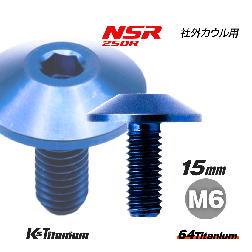 > チタンボルト M6×15 全ネジ P1.0 ブルー 1本 社外カウル 自作 FRP カウル ボルト バイク レストア パーツ 64チタン