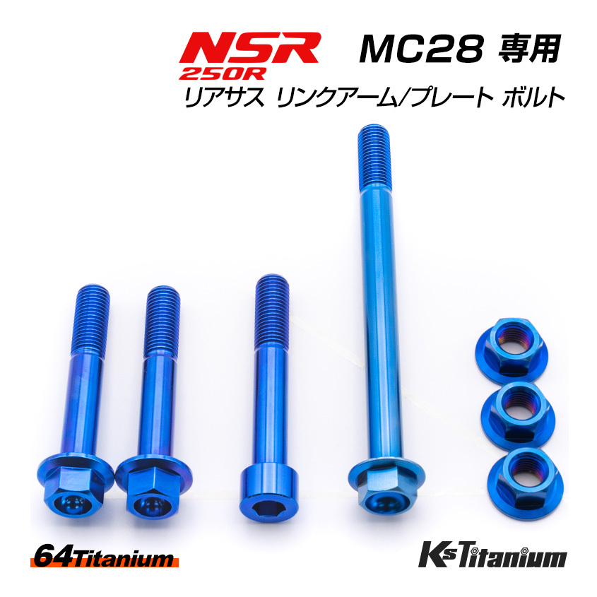 > チタンボルト NSR250R MC28 リアサス リンクプレート リンクアーム リアサス下部 ボルト 7点セット ブルー 64チタン NSR レストア 軽量化