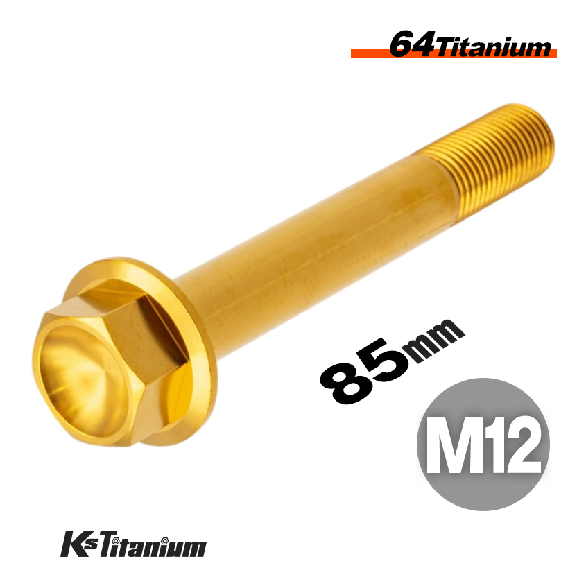 - チタンボルト M12×85 スレッド25mm P1.25 フランジボルト ゴールド 1本売り 64チタン M12 バイク レストア パーツ