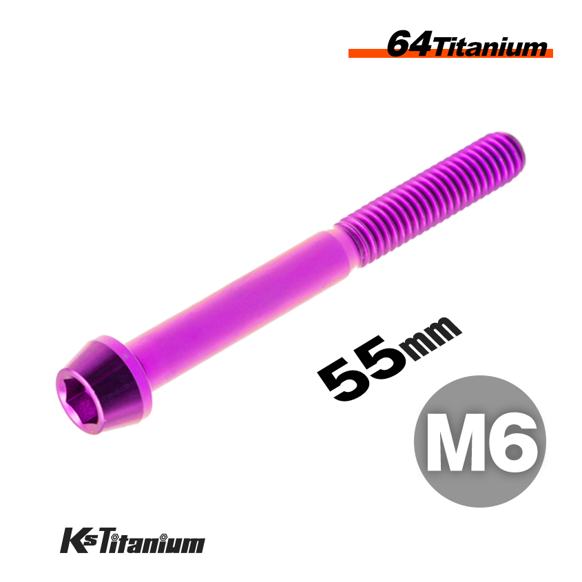> チタンボルト M6×55 P1.0 パープル 1本売り 64チタン テーパーボルト スレッド 25mm バイク レストア パーツ
