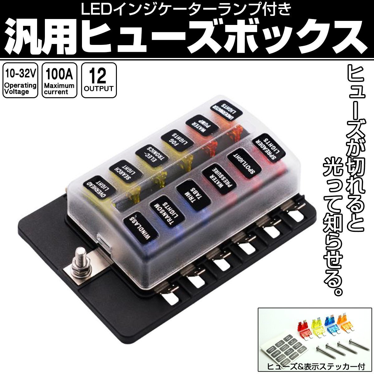 - 汎用 ヒューズボックス 12極 平型端子式 12V 24V兼用 MAX100A 平型ブレード ヒューズ切れ時にLEDが光るインジケーターランプ付き I-509