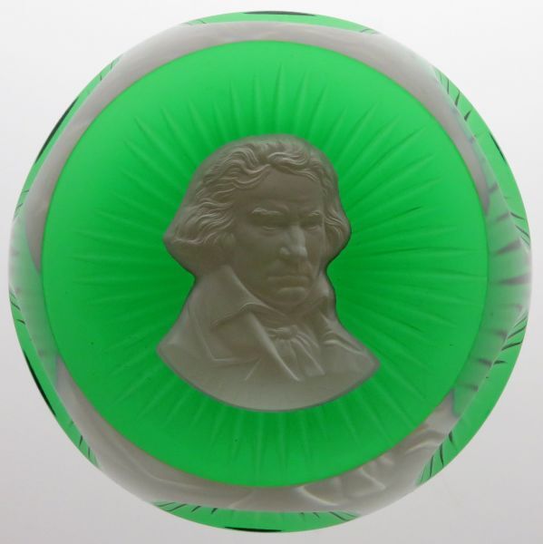 > バカラ ペーパーウェイト ● 文鎮 フランクリンミント ヨハン・セバスチャン・バッハ カメオ グリーン 緑 Johann Sebastian Bach 箱 説明書
