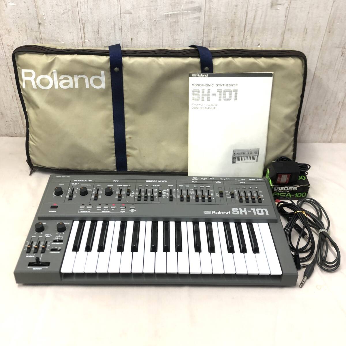 > *【音出しOK】Roland SH-101 シンセサイザー キーボード 鍵盤楽器 32鍵 グレー ローランド ケース/取扱説明書 現状品