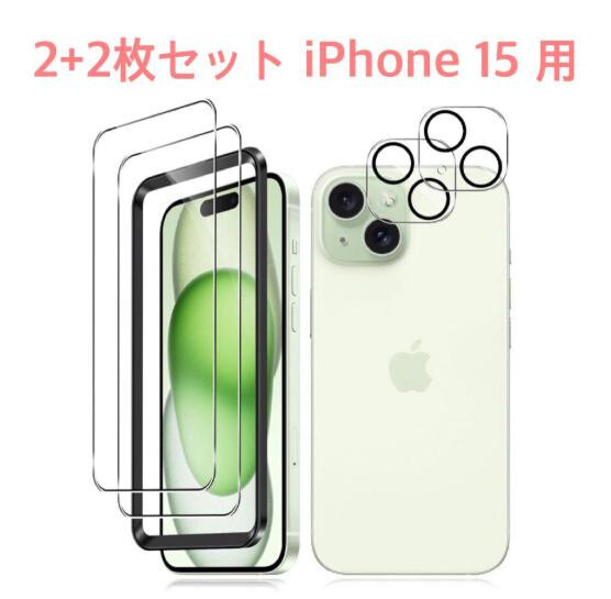 - iPhone 15 ガラスフィルム +カメラ 2+2枚セット