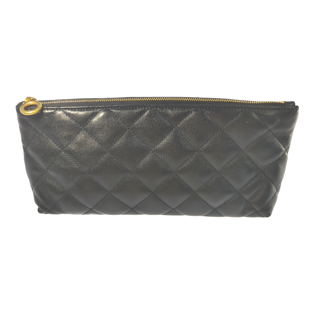 - SAINT LAURENT PARIS サンローランパリ レザー キルティング コスメポーチ バニティ アクセサリーポーチ/GNR698651/ブラック■589621