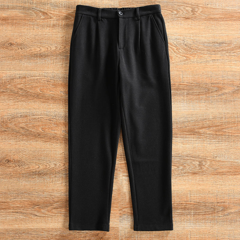- Y6372-L ブラック 新品 ウール混 ストレートパンツ スラックス 秋冬 防寒 厚手 ノーアイロン ストレッチ ゴムウエスト メンズ ビジネス