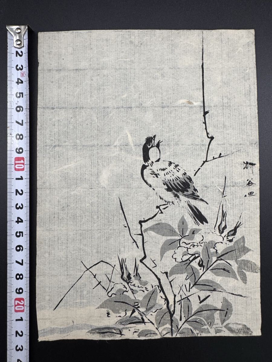 - 【真作】本物浮世絵木版画 菱川柳谷「鳥」江戸期 錦絵 中判 保存良い