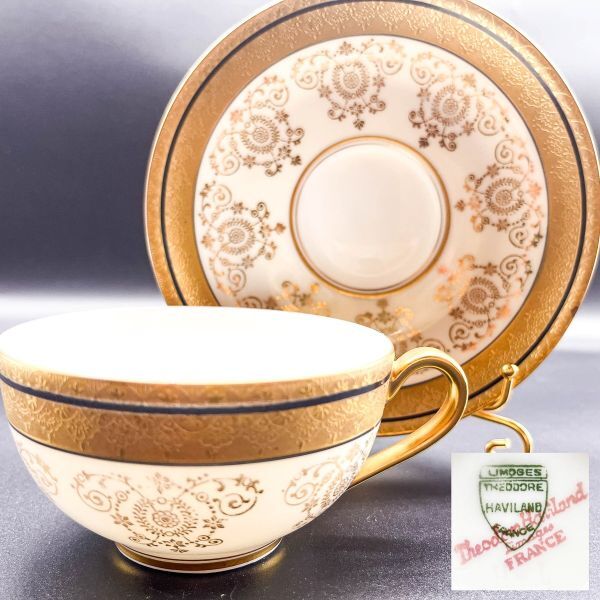 - 【アビランド】リモージュ 金彩豪華装飾 カップ&ソーサー Theodore Haviland Limoges フランス製 ヴィンテージ 高級磁器 [SN090702]