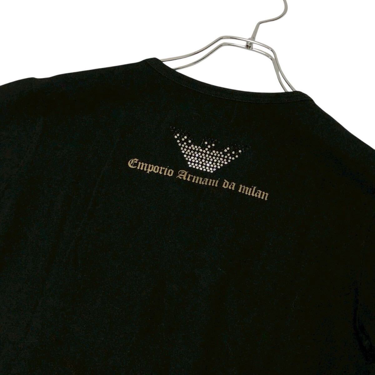> EMPORIO ARMANI エンポリオ アルマーニ 半袖 Tシャツ カットソー レディース 黒 ブラック バックロゴ イーグル Lサイズ ストレッチ性