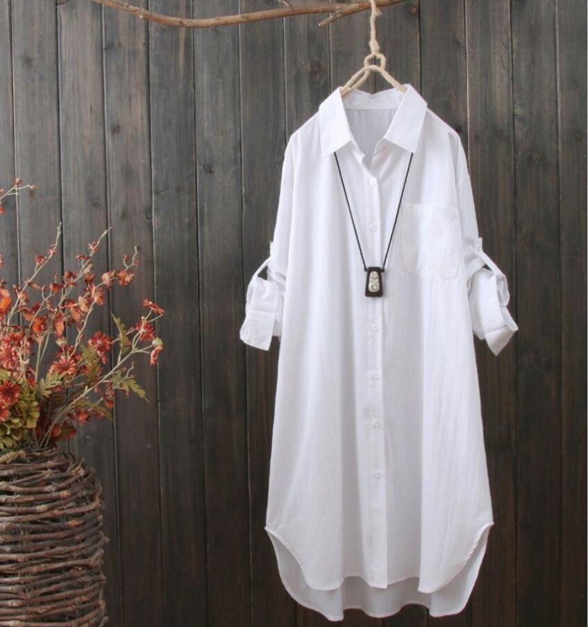 - 春夏新作 /ブラウス ロング シャツ トップス 長袖 コットン チュニック 前ボタン カジュアル ロング カーディガン/ ホワイト