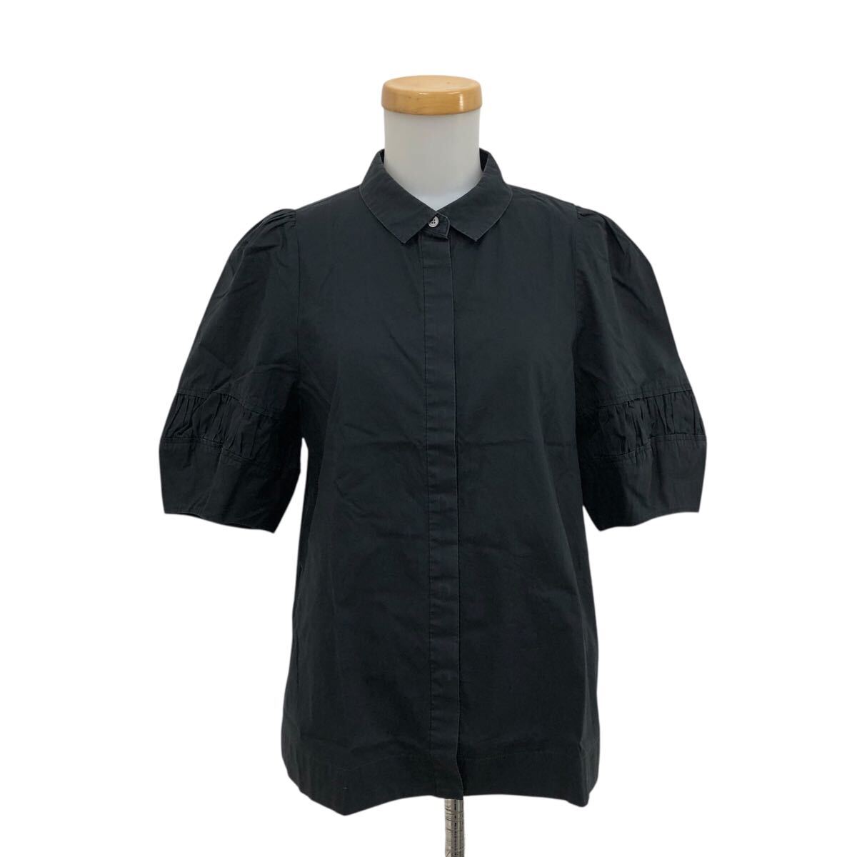 > 9Nm320-80 ANAYI アナイ コットン ストレッチ パフスリーブ ブラウス シャツ トップス ブラック 黒 レディース 38 日本製