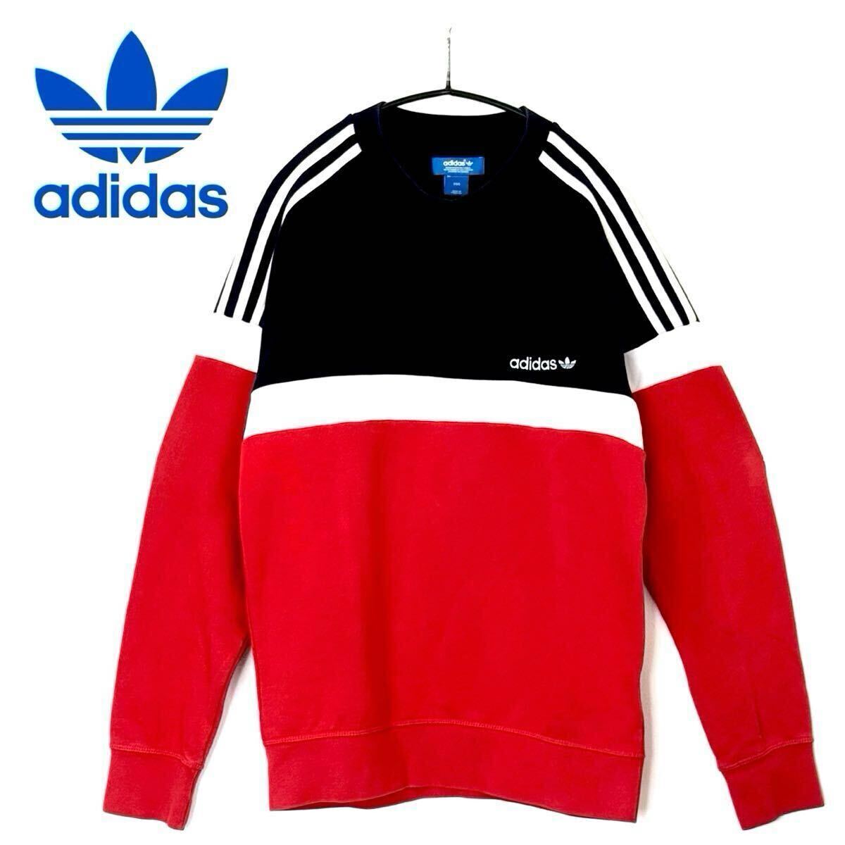 - adidas★アディダス スリーストライプス トレフォイル ロゴ 刺繍 スウェット トレーナー トリコロール