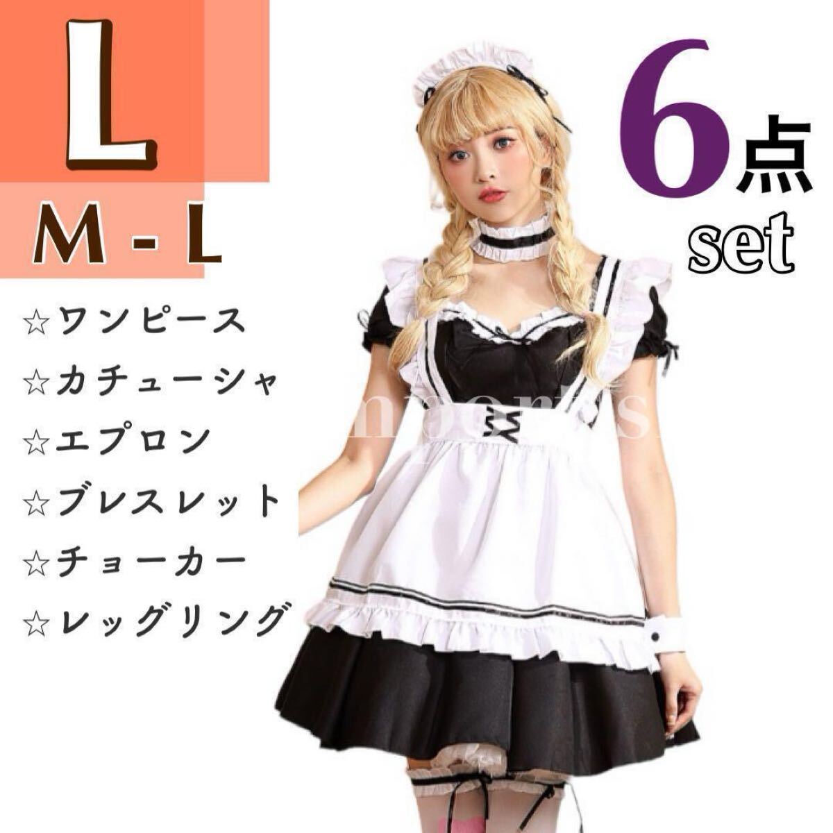 - コスプレ メイド服 レディース L 可愛い 白黒 半袖 ミニスカート 小物 衣装 仮装 コスチューム メンズ イベント 学園祭 お揃い ライブ