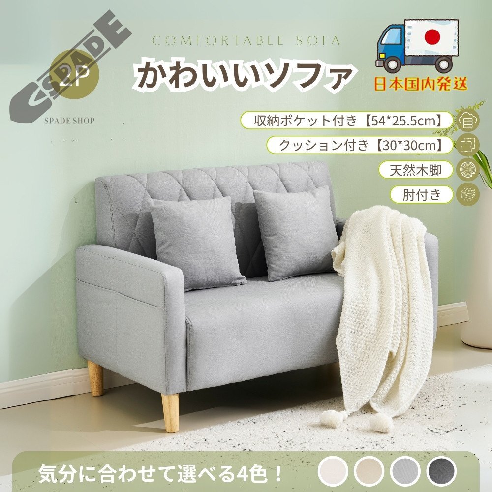 - 【国内発送】ソファー 二人がけソファー 2人掛け 幅103cm 脚高さ13cm リビングソファ 肘付き ロボット掃除機も通れる かんたん組立 枕付き