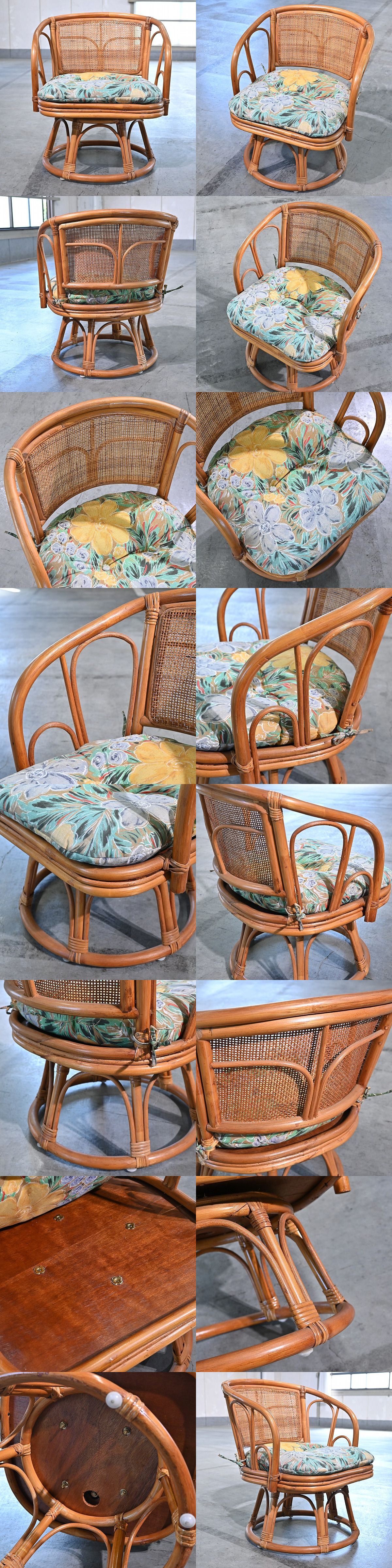 > ラタン ラウンジチェア 籐 回転 シングル アーム リビング 寝室 店舗 ジャパンディ テラス 屋外 ベランダ_ヤマカワラタン 剣持勇 Y・M・K