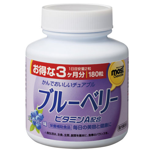 〇注意事項・送料750円が販売価格に含まれています・お取り寄せ商品です。弊社にて手配後、メーカー・卸業者からの直送になります。・まれにメーカー欠品、出荷遅延等が発生致します。問題発生時は別途メールにてご連絡致します。・配送方法の指定、日時指定、置き配、ギフト対応、他商品との同梱配送などは対応できません。・まとめ買いや複数購入の場合は通常より発送に時間が掛かる場合がございます・複数個口の場合、2階以上への搬入ができない場合があります。(その場合は1階での受け渡しとなります)・大型連休、お盆、年末年始などは発送をお休みさせていただく場合がございます・メーカー都合により、パッケージは予告なく変更される場合がございます・梱包用のダンボールはリサイクル品を使用させていただきます。・注文に関するご連絡(注文確定通知・発送通知など)はメールでご案内させていただきます※商品ページの内容について、少しでもご不明な点などがございましたら購入前に一度ご連絡ください〇商品説明手軽にポリット美味しいチュアブル!! お得な3か月分、ブルーベリーエキス配合!1)美味しいチュアブルタイプのブルーベリーです。2)ビタミンA、メグスリの木配合※ビタミンAは、夜間の視力の維持を助けるとともに、皮膚や粘膜の健康維持を助ける栄養素です。3)とってもお得な3 ヵ月分4)国内製造品本品は、目に対する機能で人気を集めているブルーベリーエキスを配合した美味しいチュアブルタイプのサプリメントです。さらにメグスリの木と、夜間の視力の維持を助けるビタミンAを配合しています。パソコンや車の運転などで目を酷使する方、目の疲れがちな方の手軽なサプリメントとしてお召し上がりください。〇商品仕様内容量:180粒入数:24×1賞味期限:2年重量…220g規格【原材料】麦芽糖、乳糖、ぶどう糖、ブルーベリーエキス、メグスリの木末、ショ糖エステル、酸味料、V.A、香料、甘味料(スクラロース)【主成分配合量/製品2 粒中】ビタミンA 110〜530μg、ブルーベリーエキス30mg、メグスリの木末2mg注意事項【利用方法】●1 日に2 粒程度を目安に、必ずかんでお召し上がりください。【保存方法・注意事項】●直射日光、高温多湿をさけ、涼しい所で保存してください。●お子様が利用される場合には、保護者監督の上、のどに詰まらせないようご注意ください。●体調や体質に合わない場合は一時利用を中止してください。●粒中に見られる斑点は原料由来のものです。また商品によって色や味に若干の違いを生じますが、品質には問題ありません。●湿気等により変色する場合がありますので、手に取った粒は戻さず、開封後はフタをしっかり締めて保存してください。●1 日の摂取目安量はお守りください。●V.A を含んでおりますので、妊娠3 ヶ月以内又は妊娠を希望する女性は過剰摂取にならないよう注意してください。△食生活は、主食、主菜、副菜を基本に、食事のバランスを。(出典:オリヒロ株式会社)