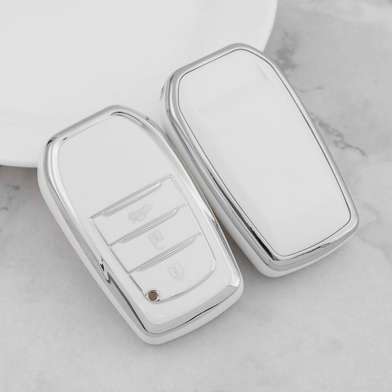 > 【送料無料、匿名配送】トヨタ スマートキーケース TPU キーカバー 白銀 3ボタン ハリアー プリウス 60系
