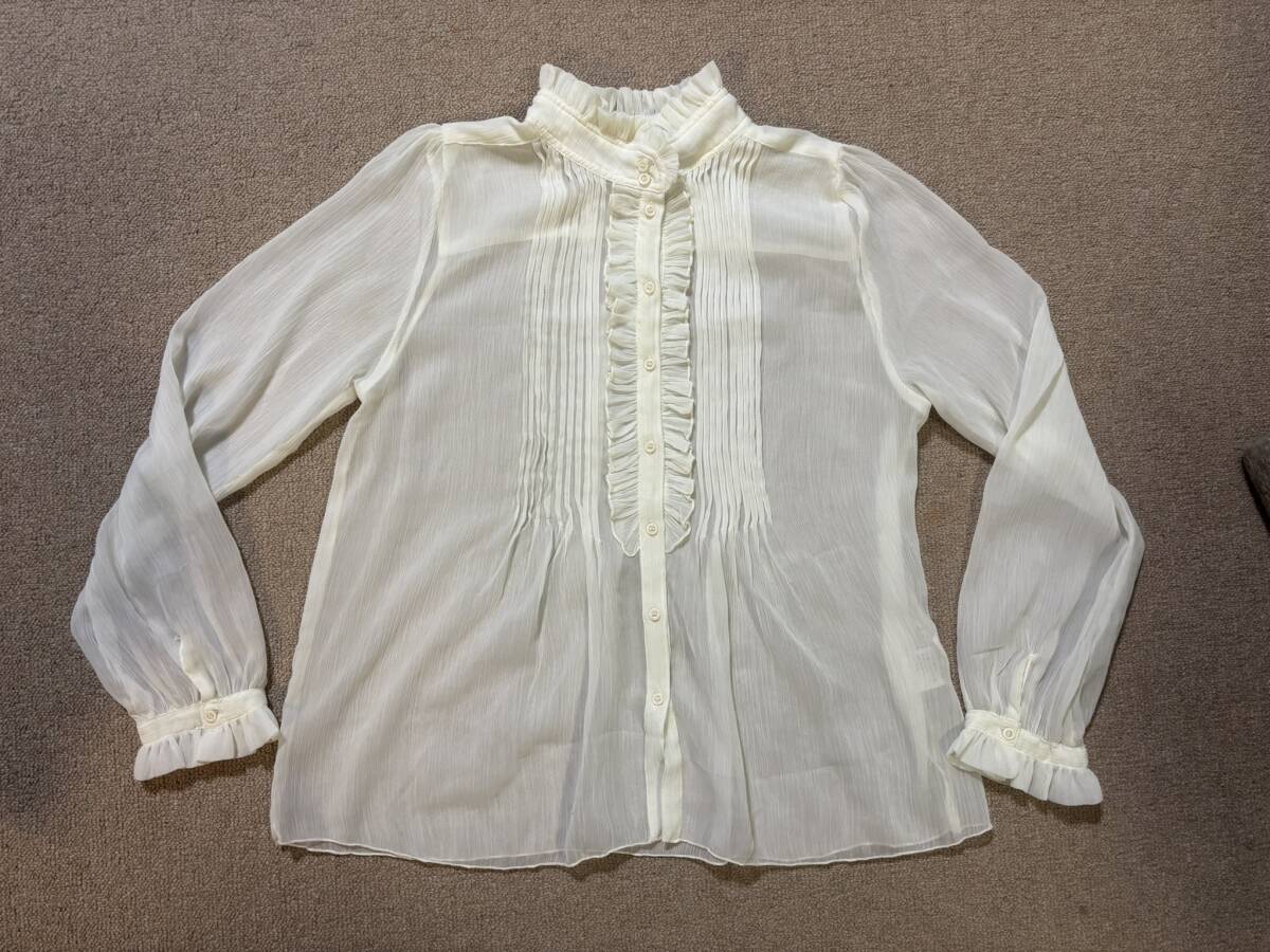 - 透け感 シースルー 長袖 フリル ブラウス シャツ レディース トップス カットソー レース シフォン シャツ シンプル/HA