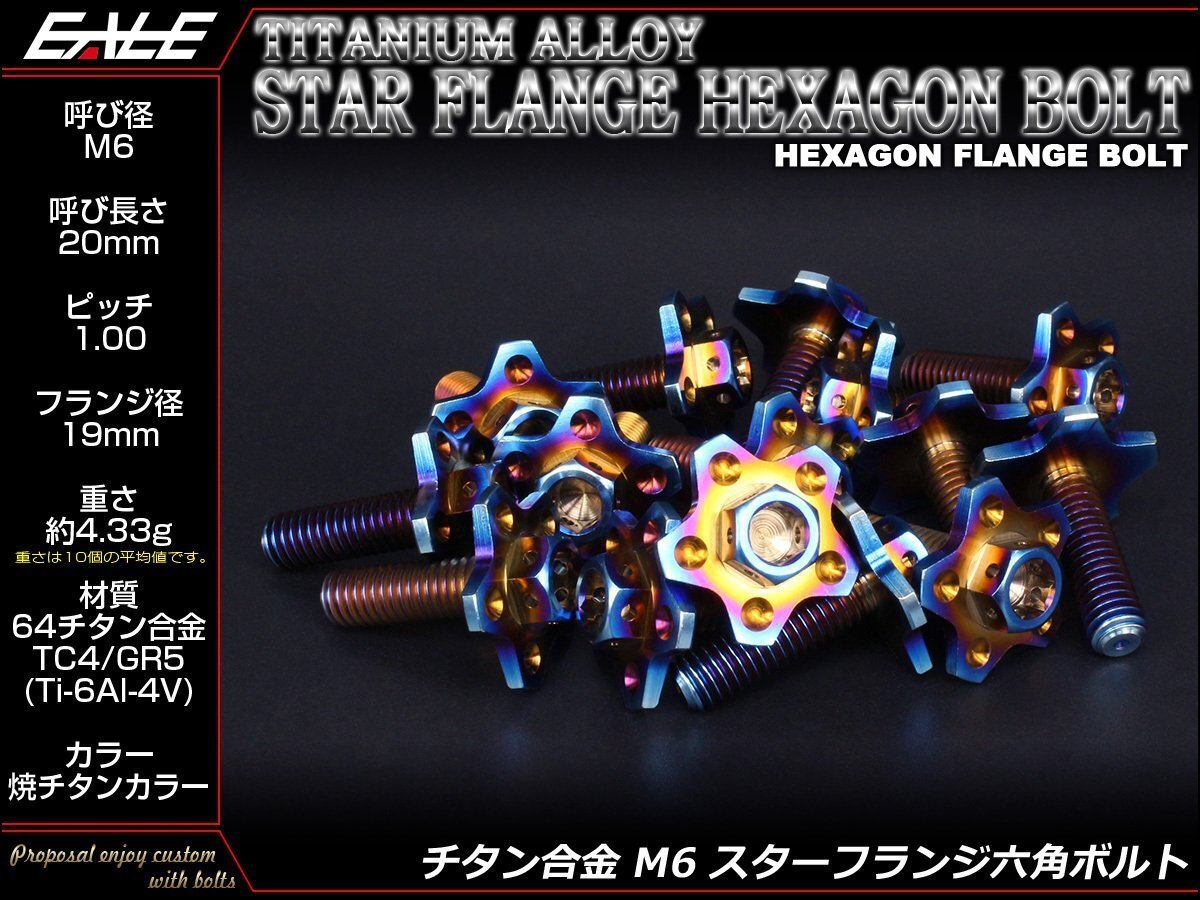> 64チタン製 フランジ付 六角ボルト 六角穴付 M6×20mm フランジ径19mm ナンバーボルト ナンバープレート カスタム ドレスアップ JA195