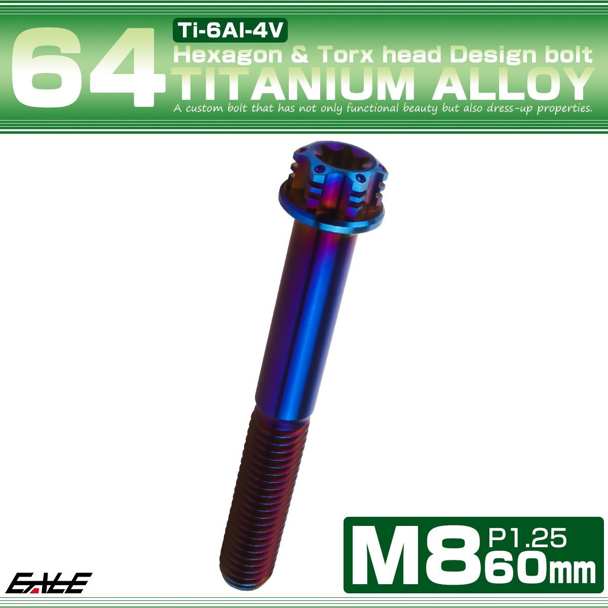 > チタンボルトM8×60mm P1.25 フランジ付き 六角ボルト トルクス穴 ワイヤーロックホール付き 焼きチタン JA1400