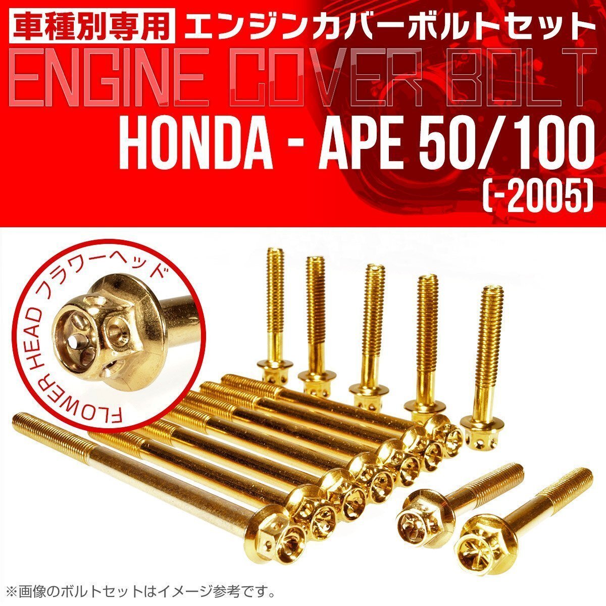 - ホンダ エイプ 50/100 ~05 エンジンカバー ボルト14本セット フラワーヘッド ゴールド ステンレス製 六角ボルト TB6155