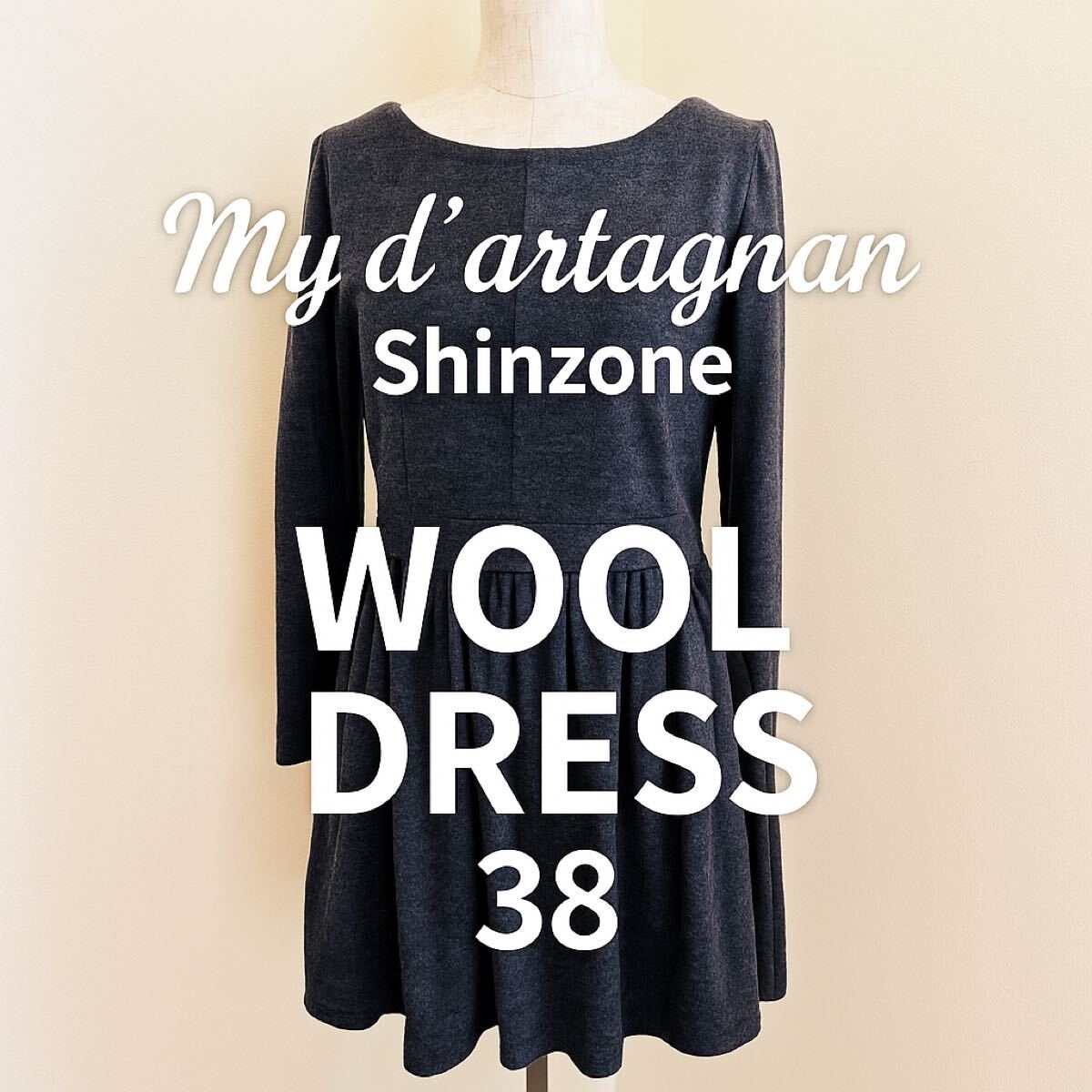 - Shinzone ミダルタニャン ウール100% 長袖ワンピース チャコールグレー 38