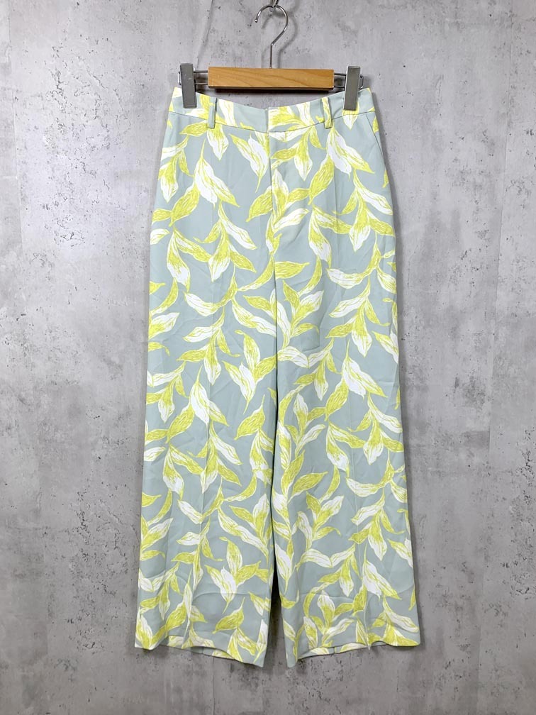 > ゆうパケットOK 美品 LAUTREAMONT ロートレアモン 定価20900円 オリジナル リーフプリント ワイド パンツ size38/ミント×黄 ■■