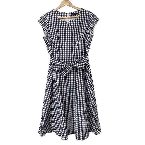 > マダムジョコンダ MADAM JOCONDE サイズ38 M - ネイビー×白 レディース 半袖/ひざ丈/チェック柄/ベルト付き ワンピース