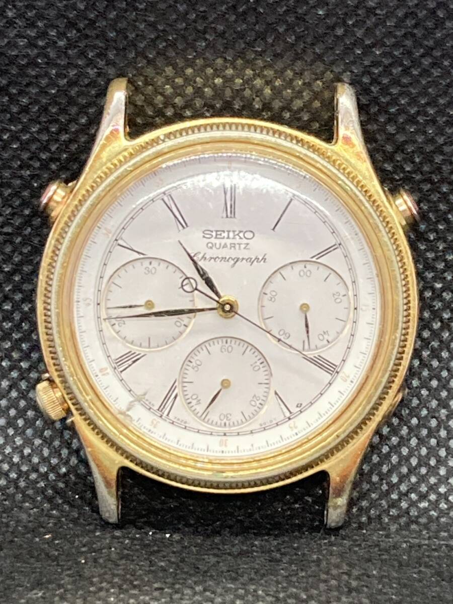 > SEIKO Chronograph セイコー クロノグラフ 腕時計 金 ゴールド クォーツ 7A28-6010 不動 現状品 ベルト無し