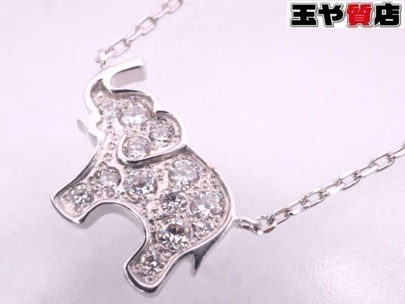 - スタージュエリー 美品 ダイヤ0.05ct 象 ペンダントネックレス K18WG ホワイトゴールド