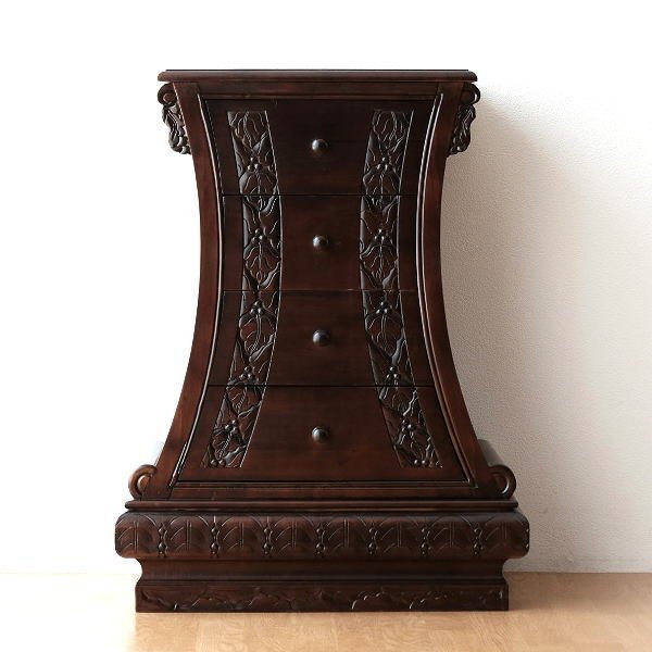 - チェスト アンティーク 家具 木製 4段 完成品 棚 タンス 引き出し 収納 アンティークな四段ラインチェスト 送料無料(一部地域除く) diz9788