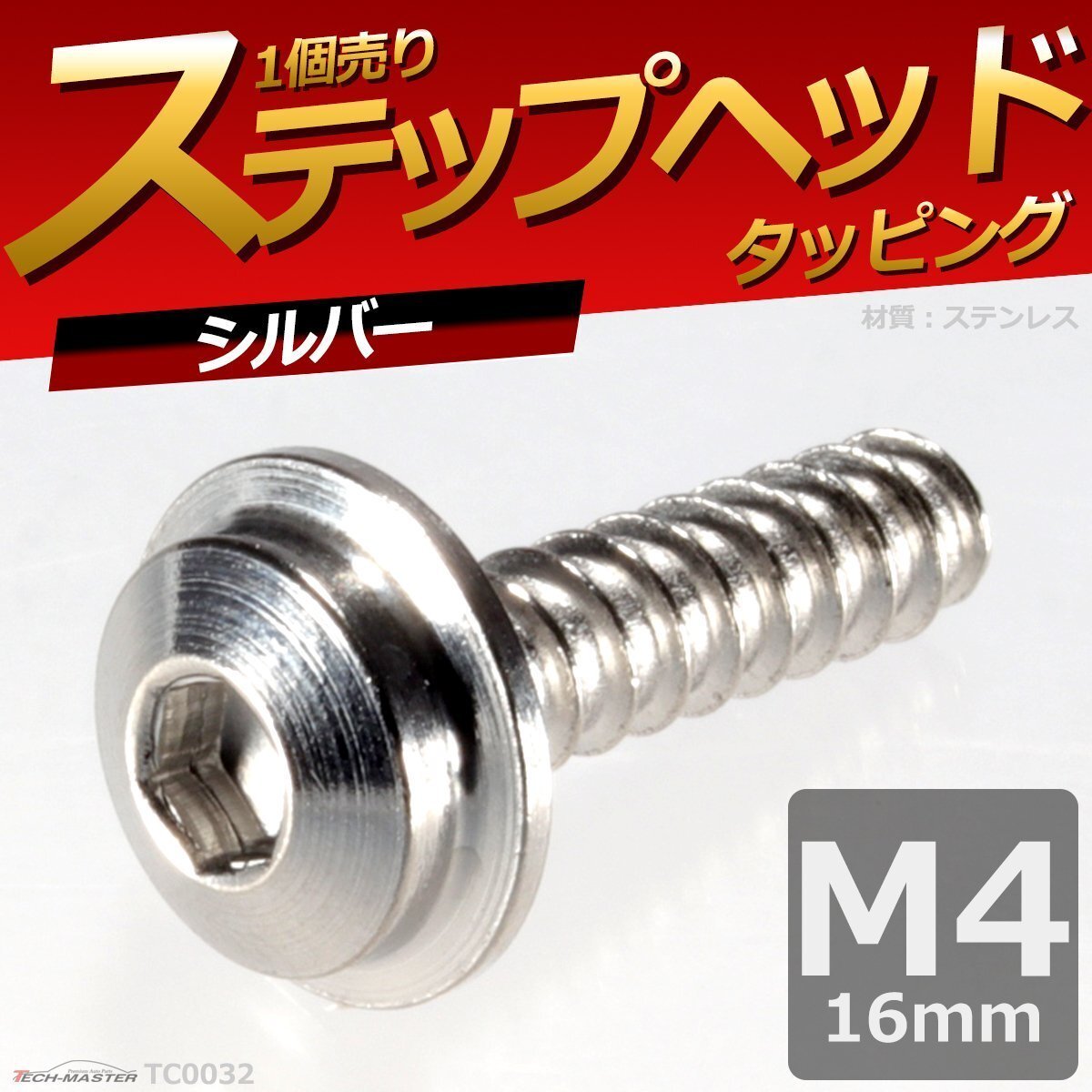 > M4×16mm ステップヘッド タッピングネジ ステンレス 六角穴付きネジ 車/バイク ドレスアップパーツ シルバー 1個 TC0032