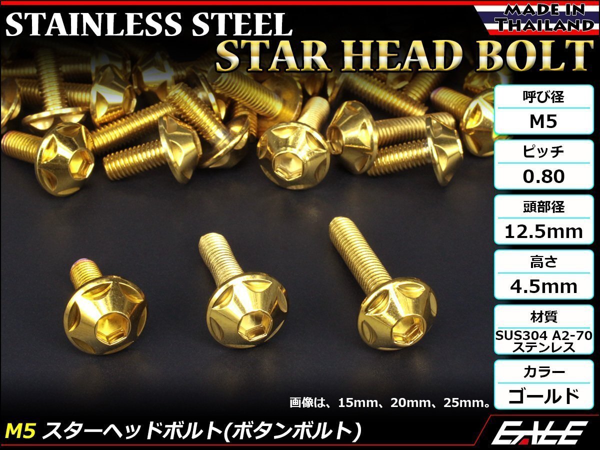 > M5×12mm P0.8 スターヘッドボルト ゴールド ボタンボルト ステンレス削り出し カウルやパネル スクリーン などの外装品に TR0018