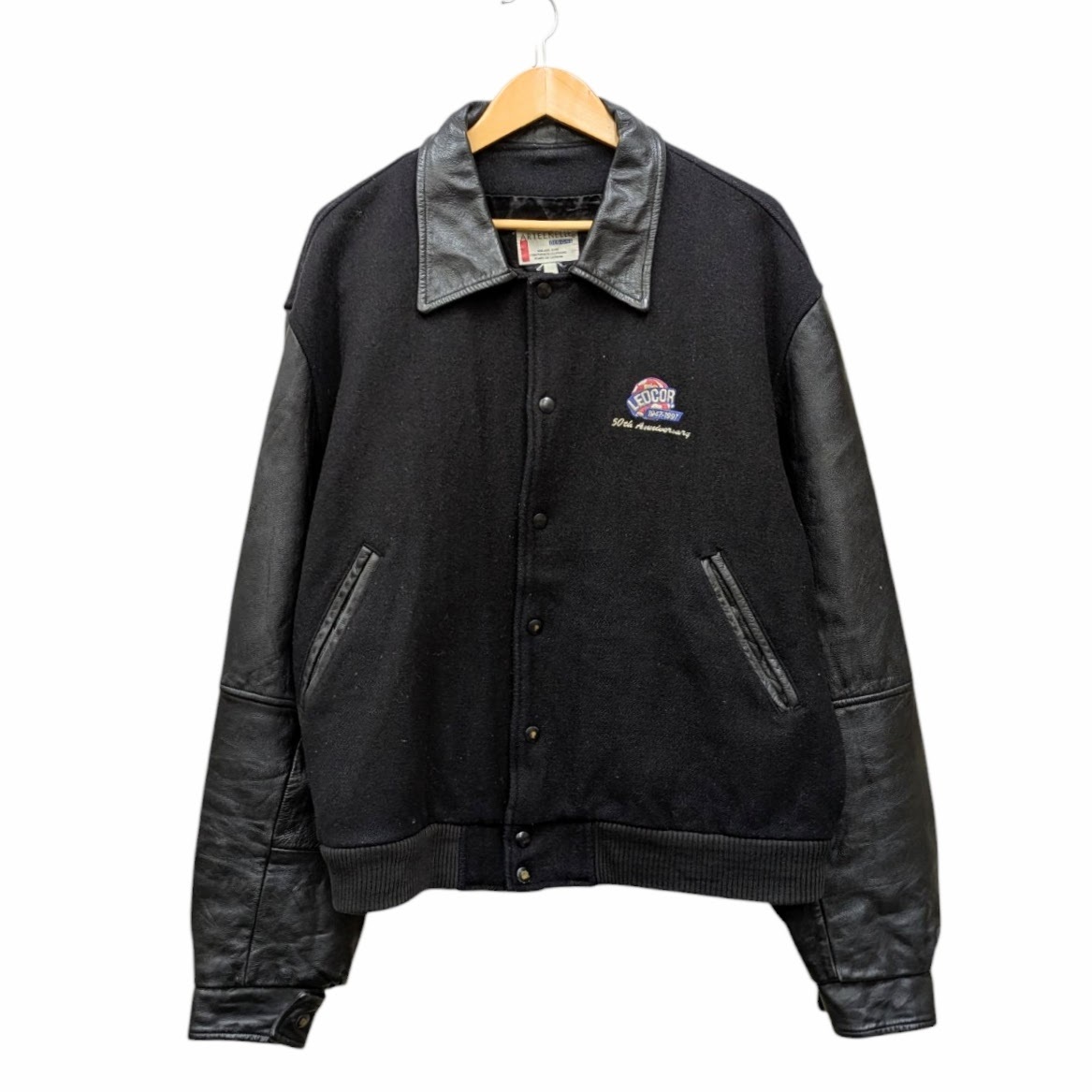 - 22 90s OLD ARTEENRLLE DESIGNS オールド スタジャン スタジアムジャンバー アワードジャケット ブラック レザー ウール 古着 カナダ製