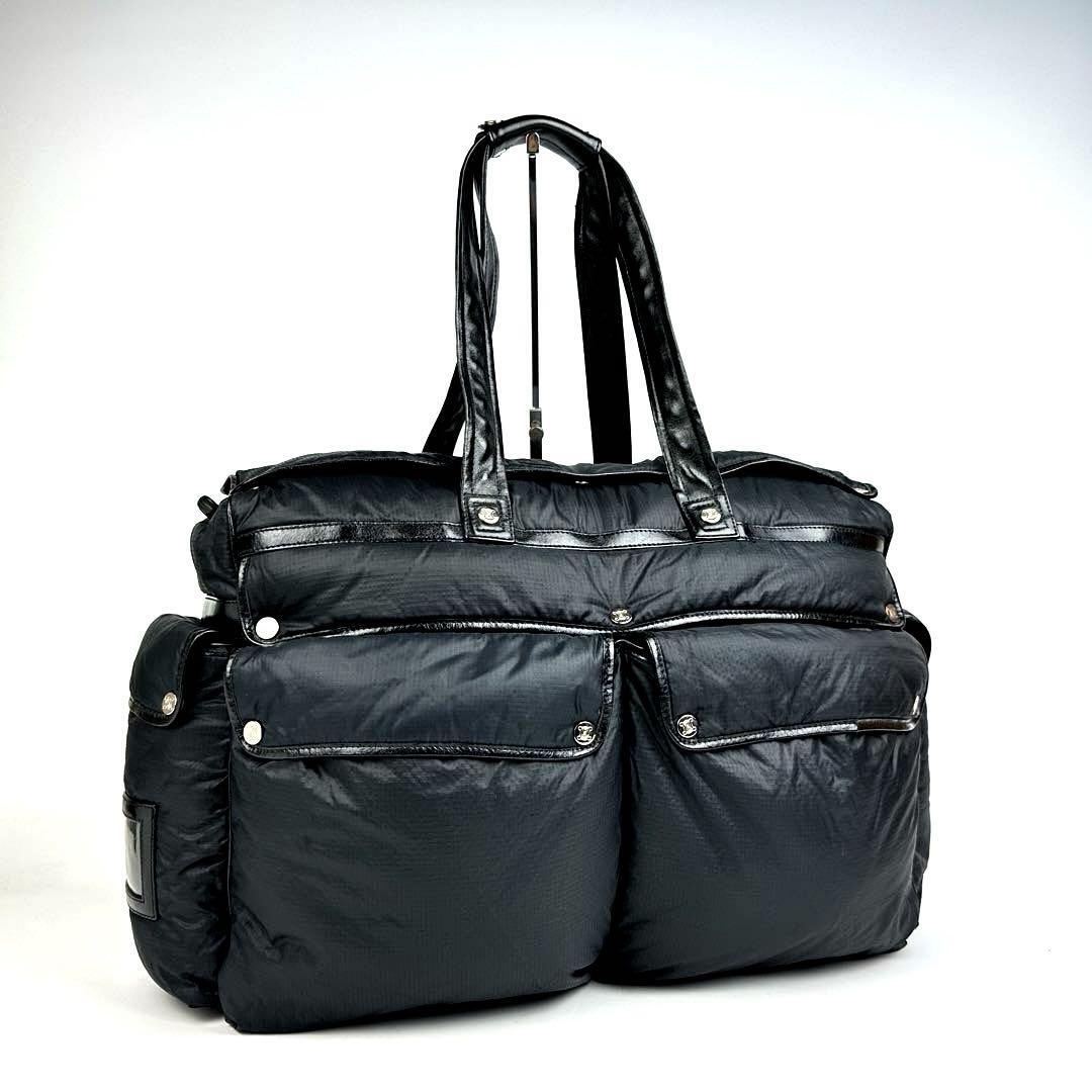 - 【美品】CELINE セリーヌ ハンドバッグ トリオンフ リング ボストンバッグ ナイロン レザー 黒色 ブラック フォーマル A4可 *入手困難品