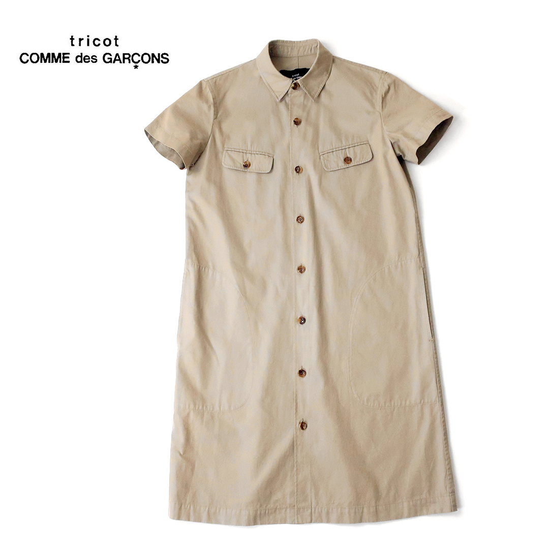 - tricot COMME des GARCONS 微玉虫ギャバジンコットン シャツワンピース ベージュ(M) コムデギャルソン