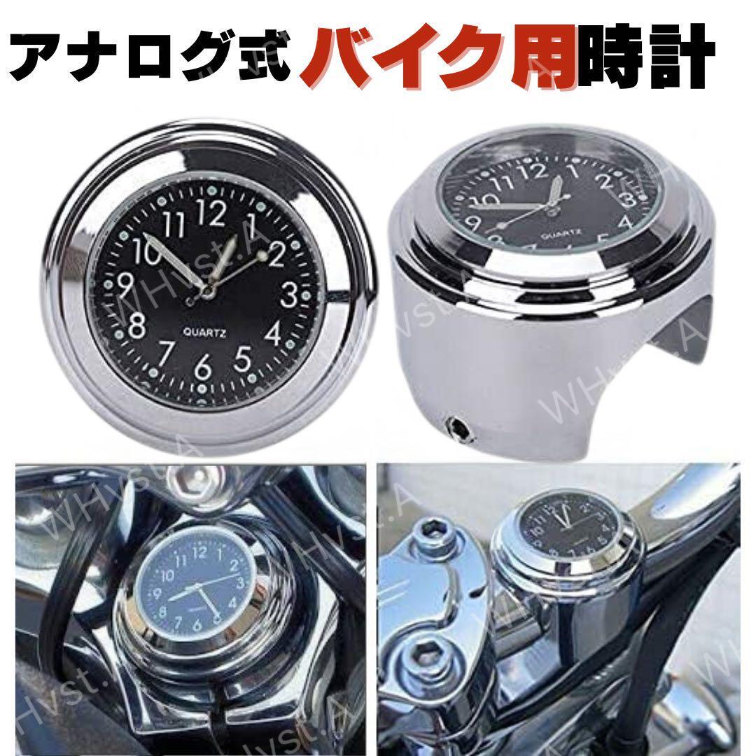 - バイク 自転車 時計 防水 ハンドル取付 アナログ メッキ 夜間発光 シルバー