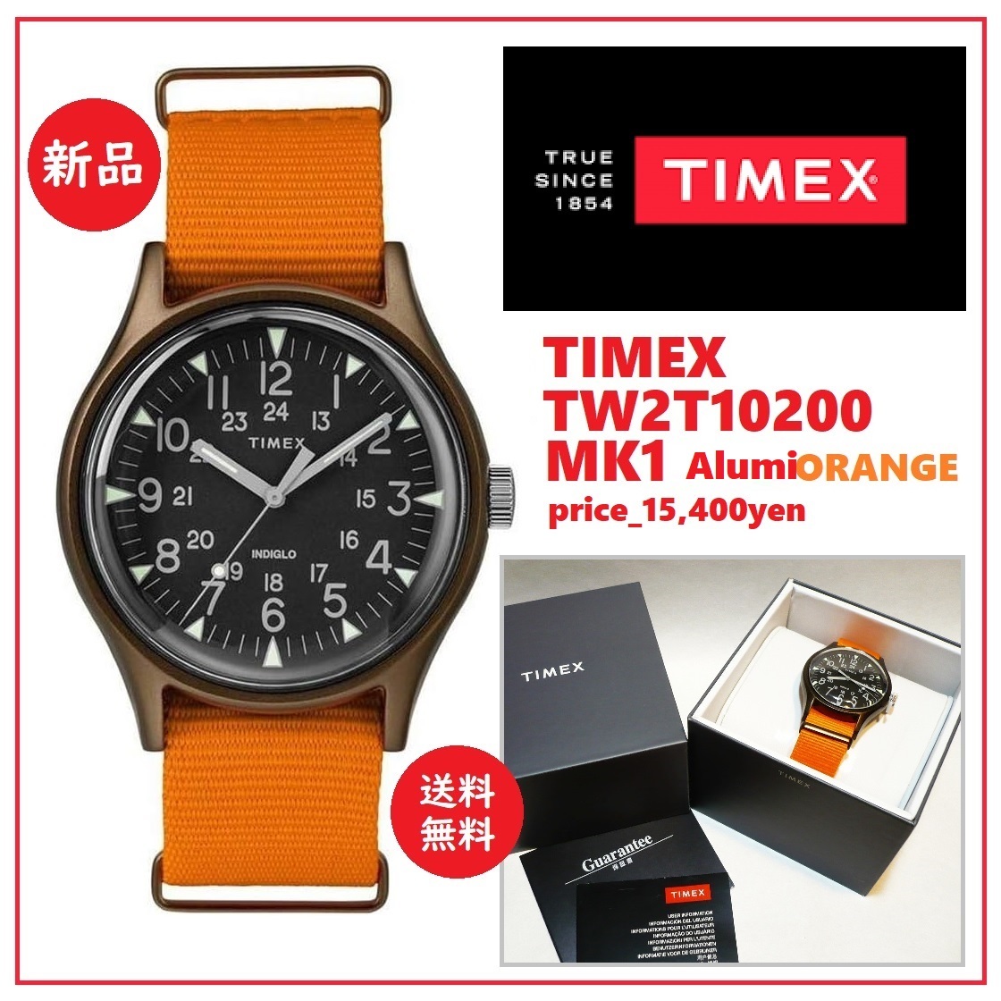 - 在庫限り 送料込 廃盤新品★TIMEX MK1 アルミニウム 腕時計 TW2T10200★タイメックス/エムケーワン/40mm/NATOベルト/インディグロ/オレンジ
