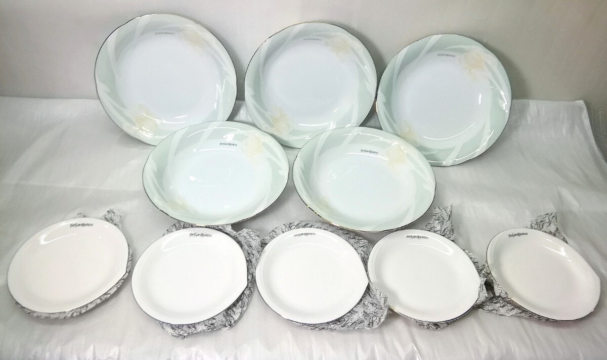 - YVES SAINT LAURENT イブサン・ローラン yamaka ヤマカ プレート 5客×2セット カレー皿/小皿 金縁 花絵 ⑩