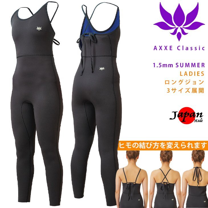 > ■AXXE Classic■レディース 1.5mm ロングジョン Sサイズ BLACKxIVORYロゴ 水着感覚 肩ひも仕様 アックスクラッシック AXXECLASSIC