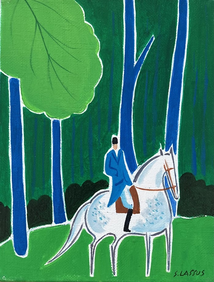 - 【真作保証】セルジュ・ラシス 『青い背景の馬』油彩画 油彩0号 フランス人気作家 向筆画 1点もの R7-0140
