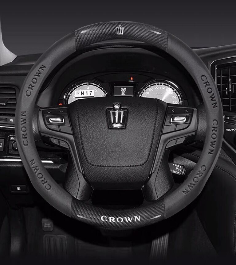 - クラウン ハンドルカバー レザー製 ステアリングカバー 滑り止め 握りやすい O型 カーボン調 Sサイズ