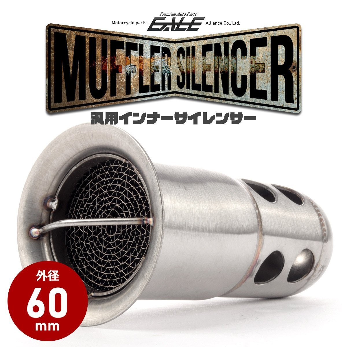 > バイク 汎用 外径60mm 砲弾 ロング 触媒型 マフラー インナーサイレンサー バッフル 消音器 ステンレス 排気音抑制 S-1017