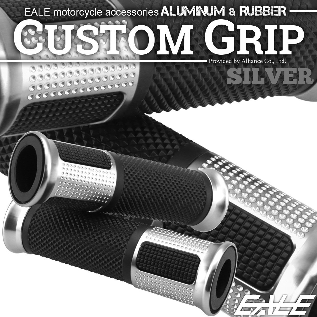 > バイク グリップ ハンドル アルミ ラバー 貫通タイプ 22.2mm用 シルバー 左右セット カスタム ドレスアップ S-574-S